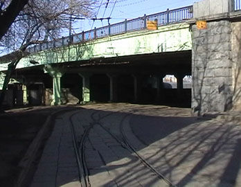 Трамвайные пути, шедшие от Ваганьковского путепровода, шли прямо, заворачивали направо под путепровод и вели прямо к Краснопресненскому трамвайному депо. Сейчас депо переехало в Строгино, а сама территория будет переоборудована под троллейбусный парк. Сюда переедет 5-й троллейбусный парк им. Артамонова, который кстати также в свое время занял место закрытого Артамоновского депо.