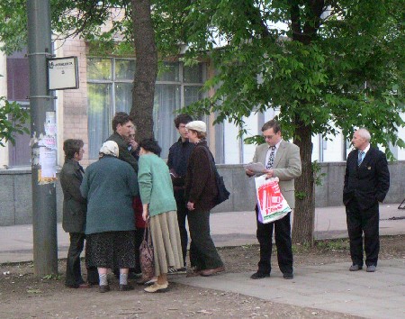 23 мая 2003 г. Руководитель Комплекса архитектуры, строительства, развития и реконструкции города Ресина В.И. подписал распоряжение 345-РЗМ от 23.05.2003 о реконструкции Ленинградского проспекта со снятием движения трамвая. Реакция нашего Комитета "Москвичи ЗА трамвай", членом которого я являюсь, не заставила себя долго ждать. Началась плодотворная работа по сохранению линии. Это прежде всего письма, листовки, статьи в СМИ. Ведется работа и на высшем уровне. Вся информация по действиям Комитета относительно Ленинградского проспекта доступна на странице Комитета в рамках сайта Московский трамвай. Вашему вниманию представляю небольшой фотоотчет о событиях и действиях Комитета, развернувшихся в районе Ленинградского проспекта. Фотоотчет будет постепенно обновляться по мере происходящих событий. Представив данные фотоматериалы, хотелось бы показать нашу огромную работу, проделываемую ежедневно и призвать Вас помочь в нашей общей борьбе за сохранение в нашем родном городе перспективного скоростного экологически чистого вида транспорта! Часть 1 посвящена агитационной работе среди населения, часть 2 посвящена пикету на Пушкинской площади 9-го июня, а 3-я часть митингу за трамвай